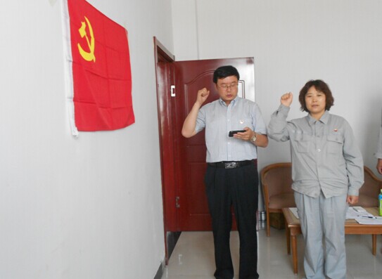 在迎接中国共产党建党93周年之际,内蒙古庆华党支部讨论通过了谢淑兰同志为中国共产党预备党员。公司机关支部讨论通过了殷善威同志为中国共产党预备党员。公司党委领导分别参加了支部大会,并对谢淑兰和殷善威同志提出殷切希望。他们分别在庄严的党旗下进行了入党宣誓,并表示在今后的工作中严格按照共产党员的标准要求自己,发挥共产党员的先锋模范作用。