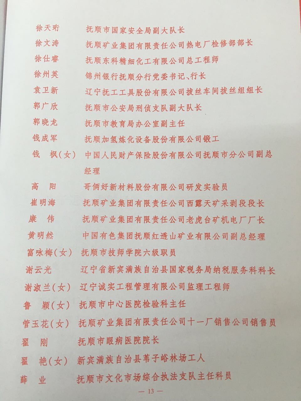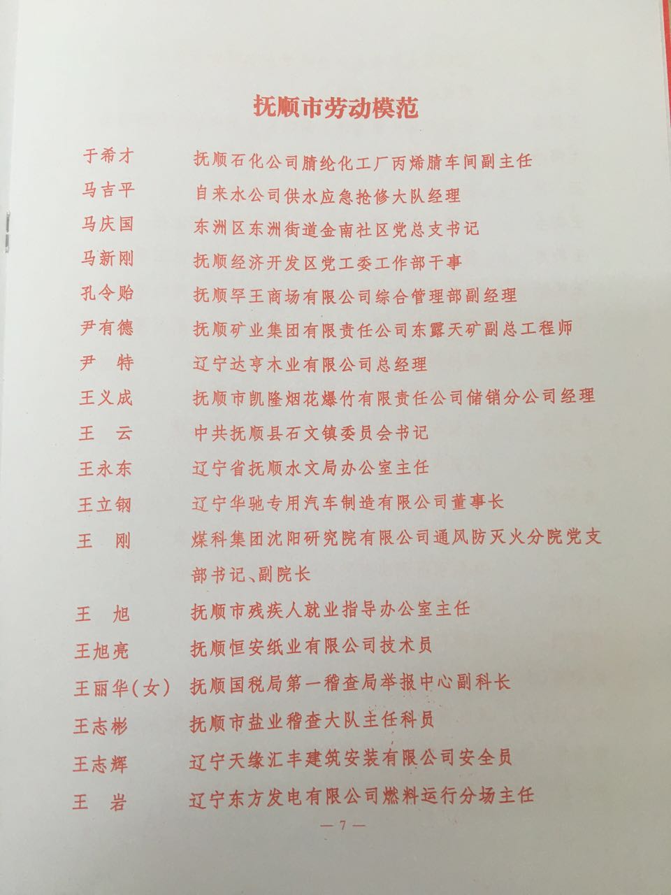 热烈庆祝我公司谢淑兰同志荣获抚顺市劳动模范称号