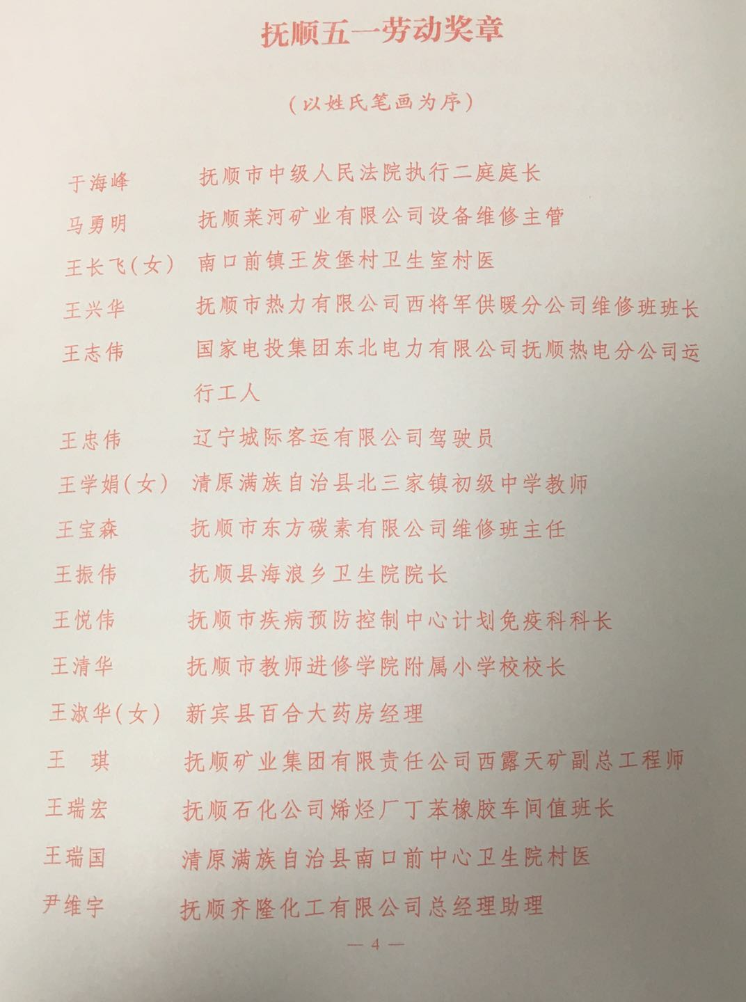 热烈庆祝我单位任润东、郭建伟两位同志荣获“抚顺五一劳动奖章”荣誉称号